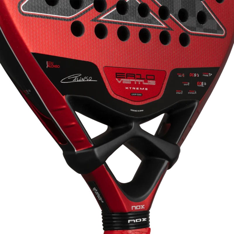 Designed together with Edu Alonso, one of the most outstanding young Spaniards on the professional circuit, the EA10 Ventus Hybrid 12K XTREM is designed for players who experience padel with maximum energy during every point. With its teardrop shape and perfect balance, this racket responds with agility on fast shots and offers the power and control needed to adapt to any situation. It features the new mould from the Signature Racket collection, which improves aerodynamics and overall performance, providing a more responsive and precise playing experience.